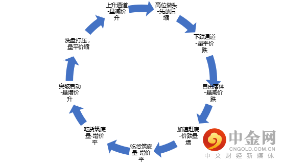 通过观察我们发现,市场当中大多数通过资金运作波动的股票都遵循这一量价循环逻辑,一轮资金推动的行情必然要经过打压吸筹,震仓洗盘,推升股价,出货变现几个阶段。在不同阶段量能和价格都有相应的配合,只不过有时根据市场环境,消息因素等变化,顺序有时会有所不同,相互之间也会有交叉,比如拉升过程中有时会伴随着洗盘。另外在大级别行情中会反复循环多次。