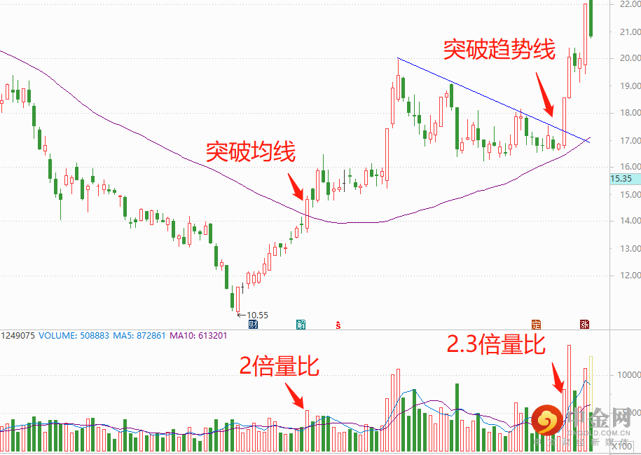量比搭配日线级别的技术效果更好,日线上正在冲击某一均线或阻力。这时量比如能显著增加,突破成功的概率会大增。