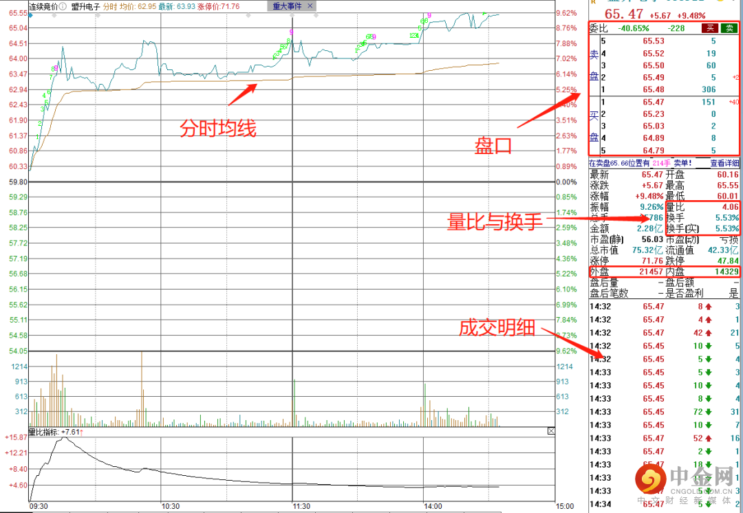 实践当中需注意,由于每天早盘成交量最大,所以在早盘10点时,量比比收盘阶段至少要大一倍。也就是说10点左右如果量比是4,那么大概率收盘时量比位于2附近。当然,涨停后急速缩量和全天放量的极端情况个股另算,多数情况下公司还是遵循这一规律。