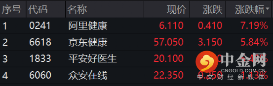 与此同时,港股互联网医疗板块同步拉升,阿里健康涨超7%,京东健康、平安好医生涨超5%。