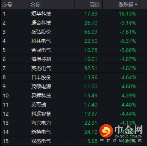 2月16日上午,充电桩板块低开低走。炬华科技跌超16%,通合科技跌超9%,盛弘股份跌超7%,茂硕电源、英可瑞等前期活跃个股快速走弱。