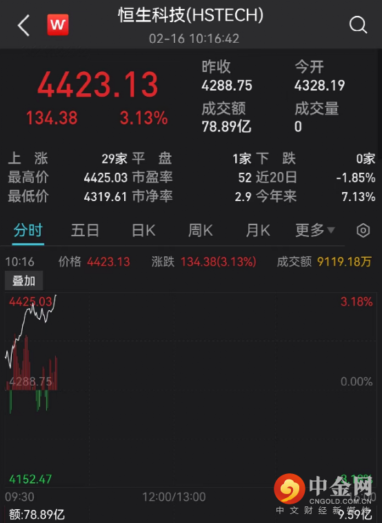 开盘后,港股市场涨幅持续扩大,恒生科技涨超3%。