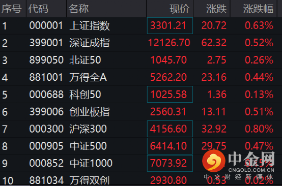 在大金融板块的带动下,上午A股各主要指数全线走高,上证指数重回3300点。