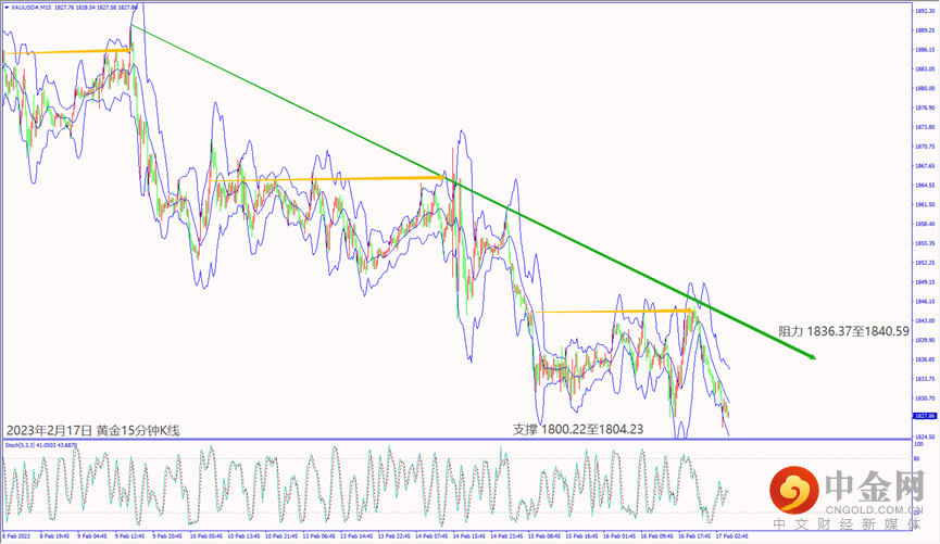 周四(16日)欧洲央行官员表示通胀下降利淡欧元,以及美国公布PPI数据利好美元指数上涨,造成黄金价格下跌约17美元。晚间美联储官员预期不准备宣布下次扩大加息利淡美元,带动黄金价格逆势涨约18美元,尾盘回落在1840.00关口附近盘整。