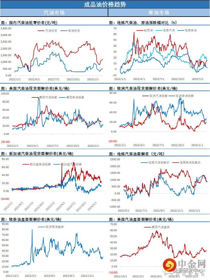 【3】睿咨得在近期报告中显示在欧盟 (EU) 禁运和 G7 对俄罗斯石油产品实施价格上限的第一周(2 月 6 日至 12 日),俄罗斯的石油产品和原油海运出口量大幅下降。与上周的四周平均水平相比,成品油出口量每天减少约 90 万桶,其中原油出口量减少 70 万桶/天。同时睿咨得认为这些下降不是由于禁运,而是天气造成的,因为 2 月通常是波罗的海和黑海风暴最多的月份。过去两周,不利的天气也影响了哈萨克斯坦的原油出口装载量。