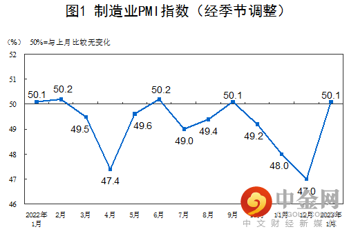 1月份,制造业采购经理指数(PMI)为50.1%,比上月上升3.1个百分点,升至临界点以上,制造业景气水平明显回升。