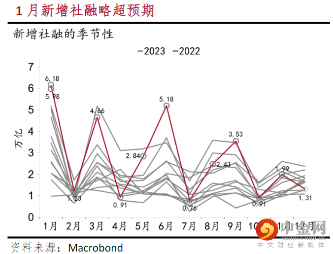 1月我国新增社融5.98万亿(预期5.68万亿),较去年同期少增1,959亿;新增人民币贷款4.93万亿(预期4.08万亿),较去年同期多增7,308亿;M2同比增长12.6%(预期11.5%)。