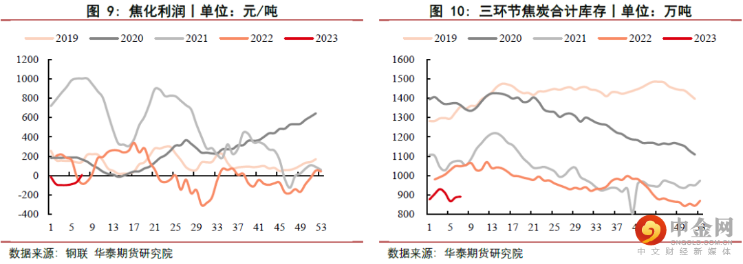 焦炭方面,本周焦炭主力合约2305震荡偏强运行,盘面最终收于2831.5元/吨,环比上涨86.5元/吨,涨幅为3.15%。本周焦炭现货价格持稳运行,但随着成材价格修复,市场信心也有所恢复。受煤炭价格下跌影响,焦化利润略有好转。