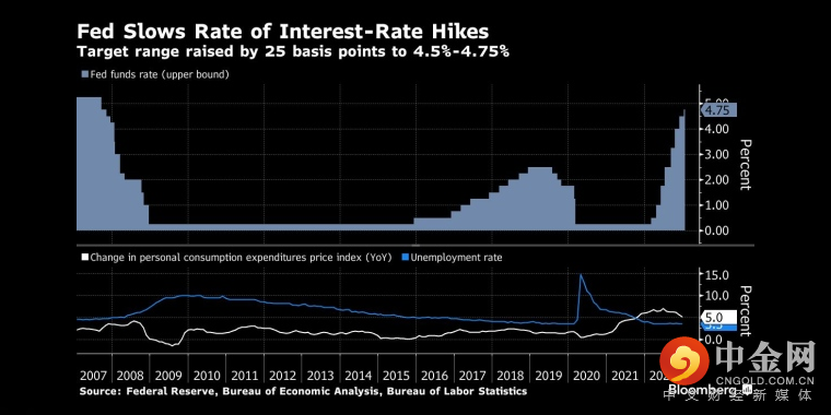 他们可能会在6月和7月的会议上继续加息的风险是存在的。加上3月和5月如预期2次加息,这将使目标区间达到5.50%至5.75%。