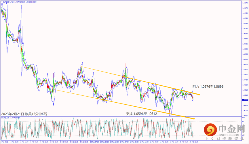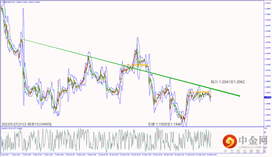 昨天(20日)受到美联储官员预期加息趋缓利淡美元转跌约35个点,拖累美日和美加皆跌逾50个点,推升欧美和镑美皆涨约35个点。美国总统拜登访问乌克兰造成地缘政治紧张,也让欧美和镑美转跌吞噬当日涨势,推升美元指数涨至103.80附近震荡。晚间美国总统日假期交投清淡,美元指数守在103.75附近盘整。