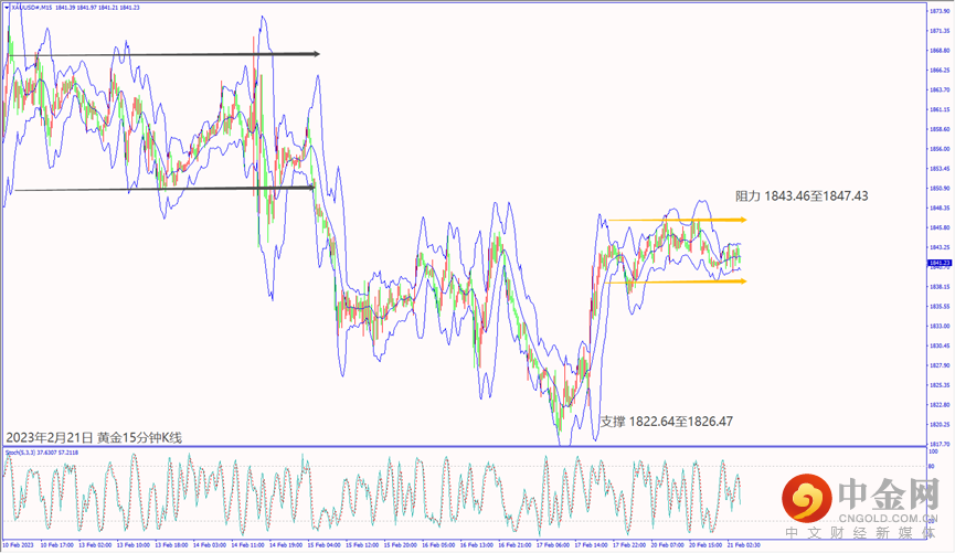 昨天(20日)美国总统拜登访乌克兰基辅,地缘政治因素造成市场抛售欧元和回补美元,也让黄金价格反转跌约6美元,尾盘守在1840.00关口上方盘整。预期今天(21日)欧元区公布经济数据大都不佳利淡欧元和利好美元,黄金价格一旦跌破5日均线1839美元,建议可短空操作。