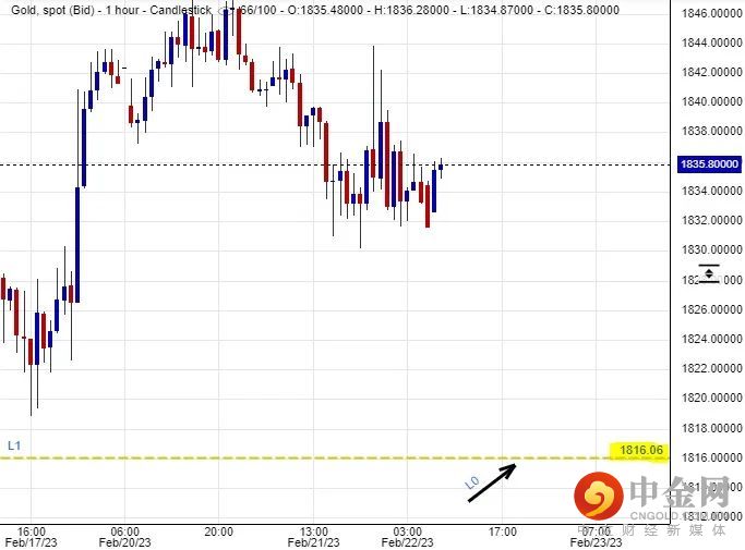 另一方面,美国昨日发布的二月份标普全球综合采购经理指数比预期及上次为好,亦重返盛衰分界线50的上方。这里想的数据结果应会强化投资者对联储局有经济基础去继续加息来压抑通胀的预期,在加息担忧情绪影响下,金价短期间又有机会跌穿$1,820水平才能够找到支持。