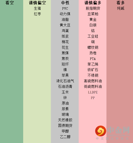 注:上图所有品种观点为主力合约的短期观点,具体以官网报告为准