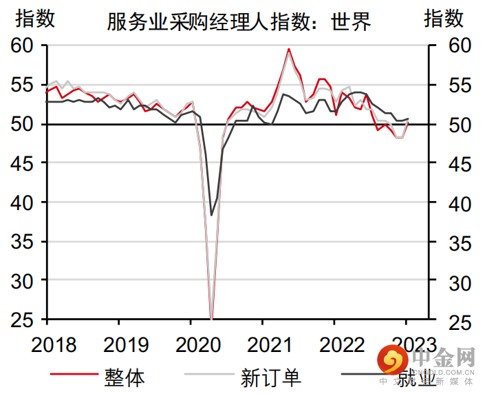 2. ……且全球服务业采购经理人指数回升至50左右