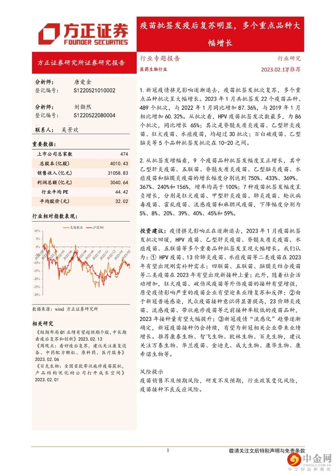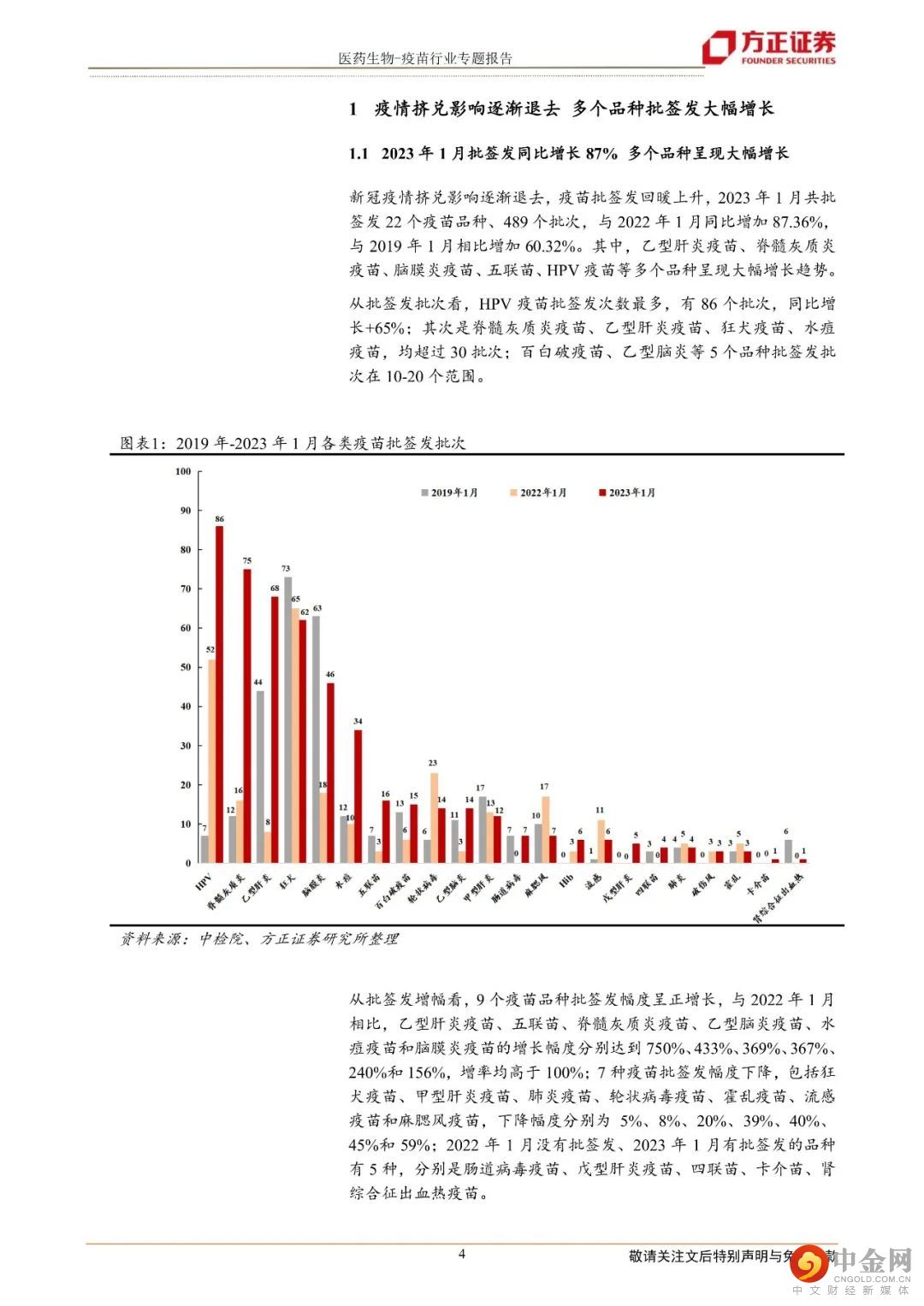 本文来自方正证券研究所于2023年2月18日发布的报告《疫苗行业专题报告:疫苗批签发疫后复苏明显,多个重点品种大幅增长》,欲了解具体内容,请阅读报告原文。