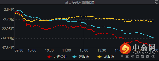 净买入额曲线图来看,昨日市场全天呈现单边流出的局面,沪股通流出34.37亿元,深股通流出12.97亿元。