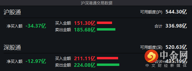 以每日额度余额口径,北向资金截至A股收盘净流出20亿元;以买卖成交额口径,北向资金净卖出47亿元。