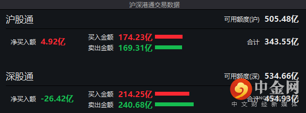 以每日额度余额口径,北向资金截至A股收盘净流出不足1亿元;以买卖成交额口径,北向资金净卖出逾21亿元。