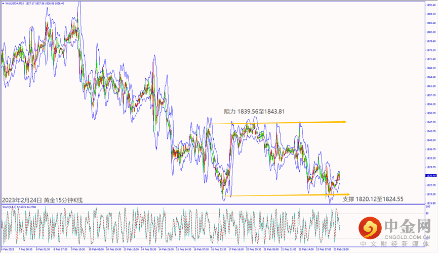 周四(23日)市场预期欧元区公布CPI数据持平利淡欧元和利好美元,也让黄金价格从当日高点转跌约16美元。晚间美国公布经济数据好坏参半,一度造成黄金价格出现约10美元震荡。市场买盘持续推升美元指数冲高,也让黄金价格回落至1820.00关口附近整理。
