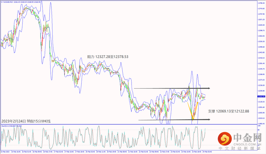 昨天(23日)美国公布第四季度GDP利淡,一度造成道琼斯和纳指跌超1%,尾盘出现反弹收复当日跌势。预期今天(24日)德国公布经济数据利好,德指若守住小时布林带中轨15,509,建议可短多操作。预期今天美国公布PCE物价利淡加息,纳指一旦突破5日均线12,175,建议可短多操作。