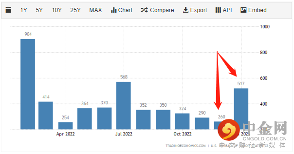 1. 美国1月非农业就业人口数量激增至51.7万人(前值26万人);