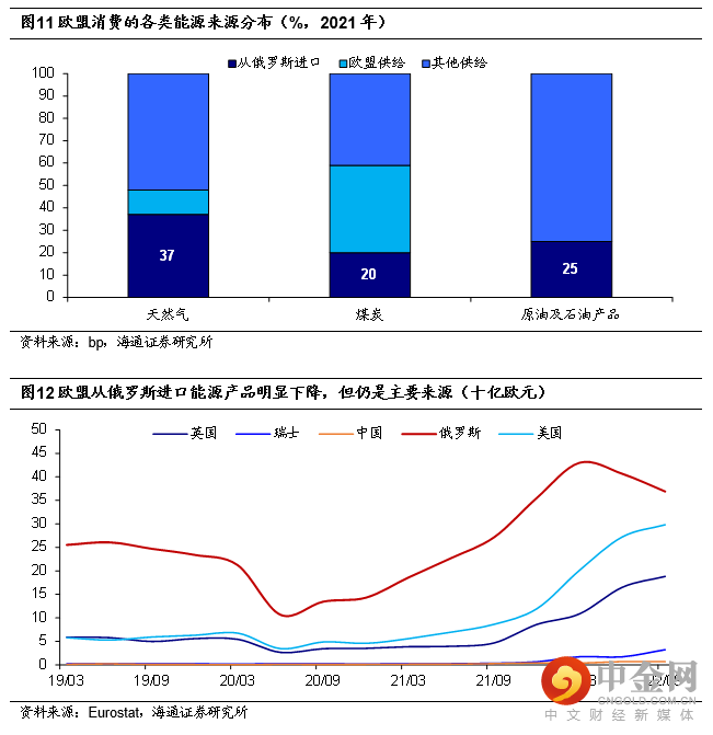 另一方面,与欧盟对俄罗斯能源依赖度高,不得不大量提前储备有关。从欧盟消费来看,截至2021年,欧盟消费的天然气近40%从俄罗斯进口;欧盟消费的原油及石油产品约25%从俄罗斯进口;欧盟消费的煤炭也有近20%从俄罗斯进口。