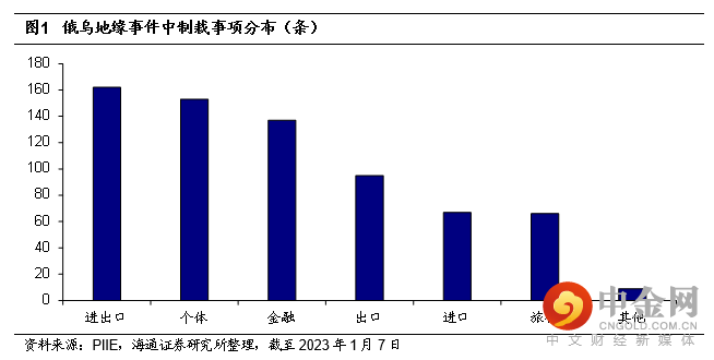 2022年2月,俄乌地缘事件开始。截至目前,已经满一年,目前仍然在延续当中。以欧美为代表的主要经济体与俄罗斯之间的制裁事项不断增加。截至1月7日,制裁事项累计600多项,其中多数集中在贸易领域(关于一些个体方面的制裁也多集中在贸易方面)。例如,对出口到俄罗斯的商品和技术进行管制,增加对俄罗斯的进口关税以及对俄罗斯能源产品出口价格设置上限等等。由于俄罗斯是能源输出大国,贸易领域的制裁多与能源相关。