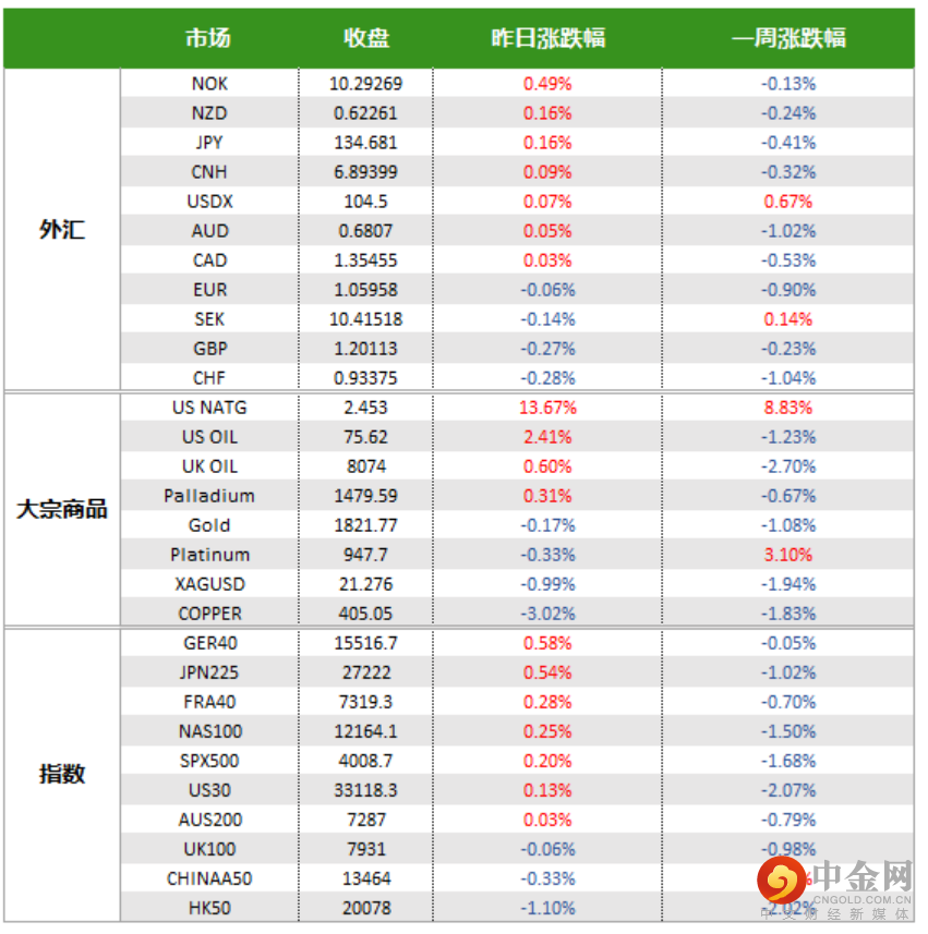尽管美债收益率连续两天小幅回落,但受益于避险情绪,美元指数依然刷新6周新高。美/日在135关口前徘徊。日本央行行长提名人植田和男今天的讲话或许将透露初他对未来货币政策的观点。