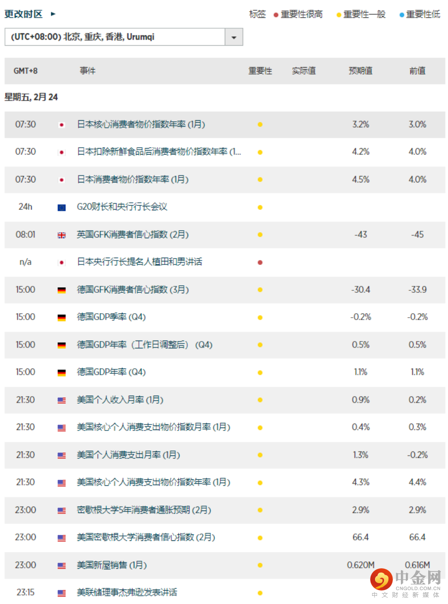 美国PCE物价指数、日本CPI、日本行长提名人讲话。