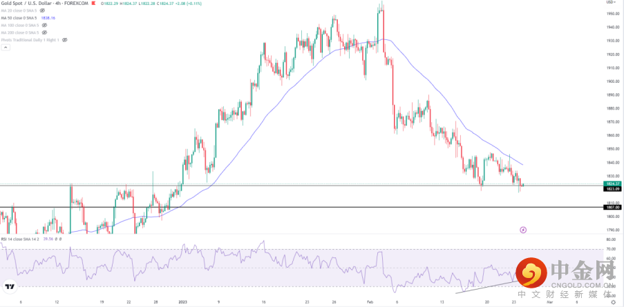 加息预期升高和美元的走强令金价在整个2月始终承压下行。4小时图上50MA扼杀了过去数次的反弹努力。今晚美国PCE物价指数出炉之前,继续关注1823以及1807等下方支撑。