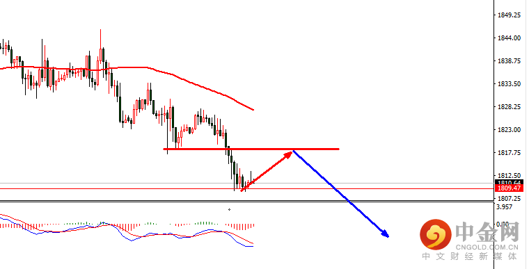 日线的前期高点在1785位置,而上周五跌破1817强支撑后,凌晨震荡修复,从盘面上看,黄金还是处于弱势。