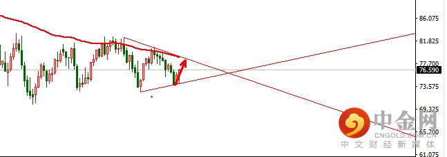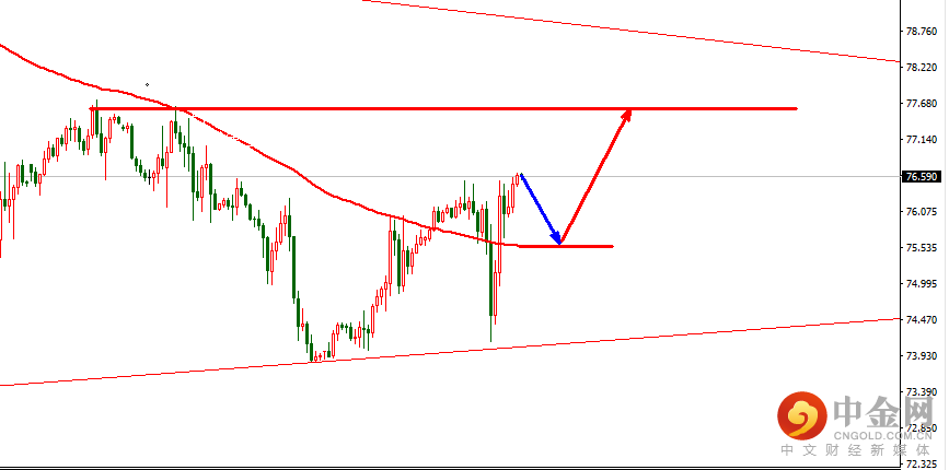 故,周一如行情回撤75.5可多,损75,目标先看77.6,突破看到78.6一线。下周整体而言,逢低做多为主