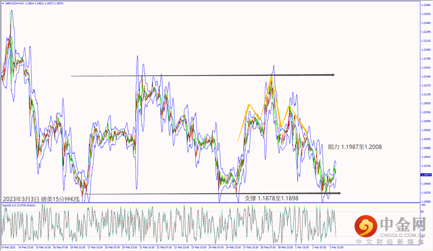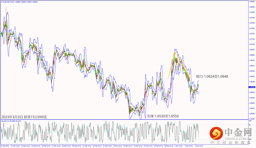 昨天(2日)惠誉预计今年晚些时候德国和意大利将出现经济衰退,以及英国政府对罢工采取强硬态度,利淡欧美和镑美下跌。欧元区公布CPI攀升和欧洲央行货币纪要如市场预期表示持续加息,而欧元仅出现小反弹。晚间美国公布当周初请失业金人数利好加息,扎空买盘推升美元指数扩大上涨约70个点,带动美日上涨约80个点,也让欧美和镑美下跌近百点,而澳美和纽美皆跌约60个点。周五(3日)清晨美国国会官员对重启债务上限谈判示警利淡美元转跌,带动欧美和镑美反弹。