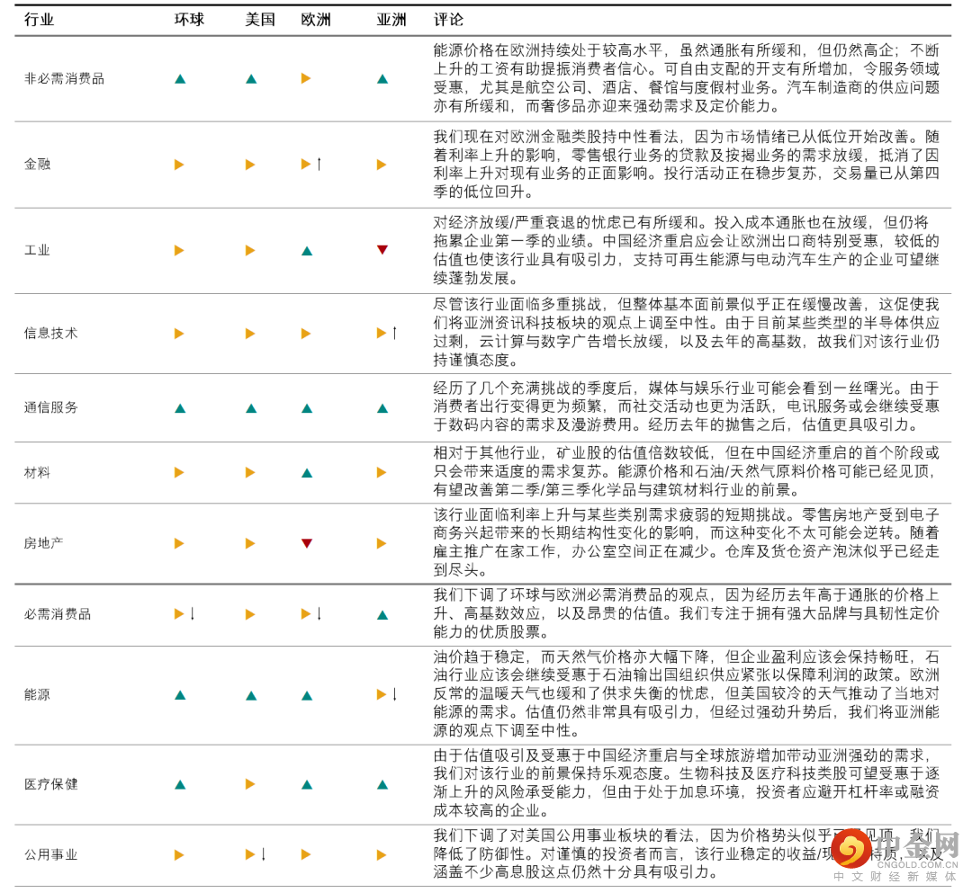 从地理位置上看,受惠于中国经济重启,亚洲市场仍然是我们的首选。由于亚洲科技行业的周期有所改善,加上全球半导体市场有望逐步复苏,我们将中国台湾股市及亚洲科技股的观点上调至中性。