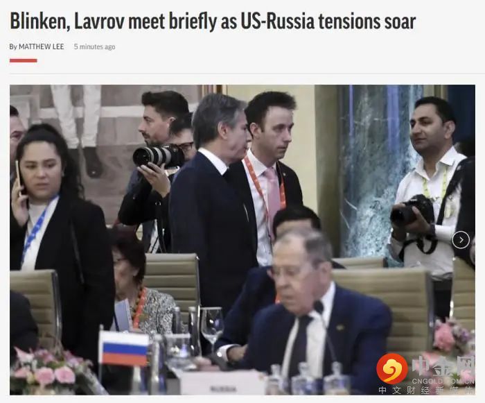 据报道,美国官员称,布林肯和拉夫罗夫在印度新德里举行的G20会议间隙,聊了大约10分钟。