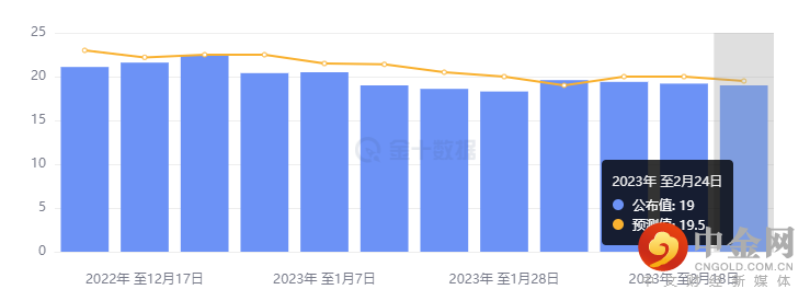 美国至 2 月 24 日当周初请失业金人数录得 19 万人,较前一周的 19.2 万人减少了 2000 人,较市场预计的 19.5 万人略低,且连续第七周低于 20 万人。