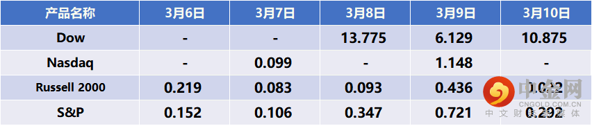 同时我们会计算出股息对股指预计产生的影响,并将数值每周发布在网站上。请您查看以下表格中本周股息调整数值的预测: