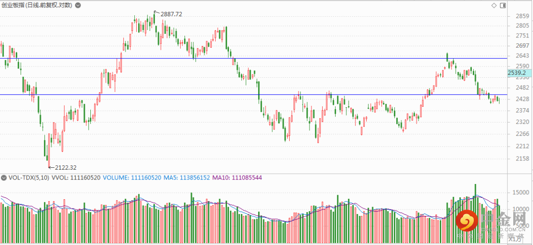 最后,我们看看创业板指数日K线。