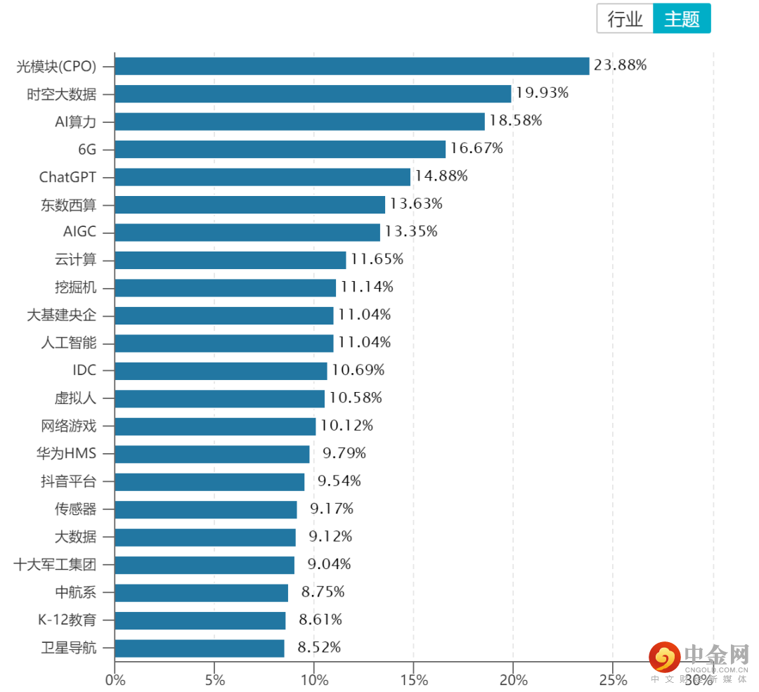 从概念板块涨幅来看,与ChatGPT相关的光模块、AI算力等主题涨幅居前。(见图3)