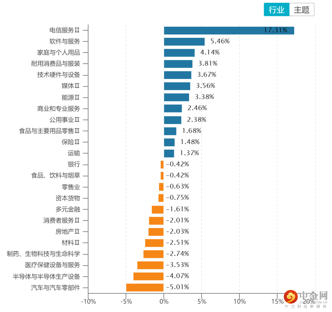 从行业板块表现来看,2月电信服务、软件、家装等板块涨幅居前,电信服务涨幅超过17%,这主要是受到ChatGPT概念的驱动;汽车与汽车零部件、半导体、医疗保健设备等板块出现在跌幅前列。(见图2)