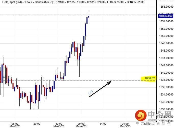 这个星期将会有三大事项需要密切关注,因为有机会再一次把金价向下推低,从而测试$1,800美元附近的支持力。首先是在美国时间星期二的时候,联储局主席鲍威尔将会出席在参议院银行委员会的半年度货币政策听证会,第二是联储局将会发布最新一份褐皮书报告,第三是这个星期美国将会发布2月份ADP私营机构新增职位数据,以及2月份非农就业人数数据。假若数据结果、鲍威尔的听证会证词,以及褐皮书报告内容,都增加了投资者对联储局今年不会轻易停止加息的预期的话,金价便有机会再一次展现出下试低位支撑力的走势。