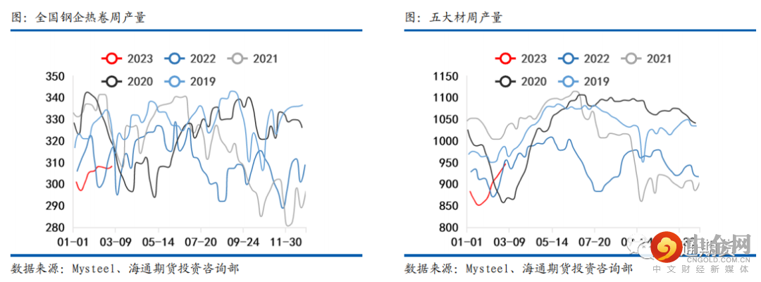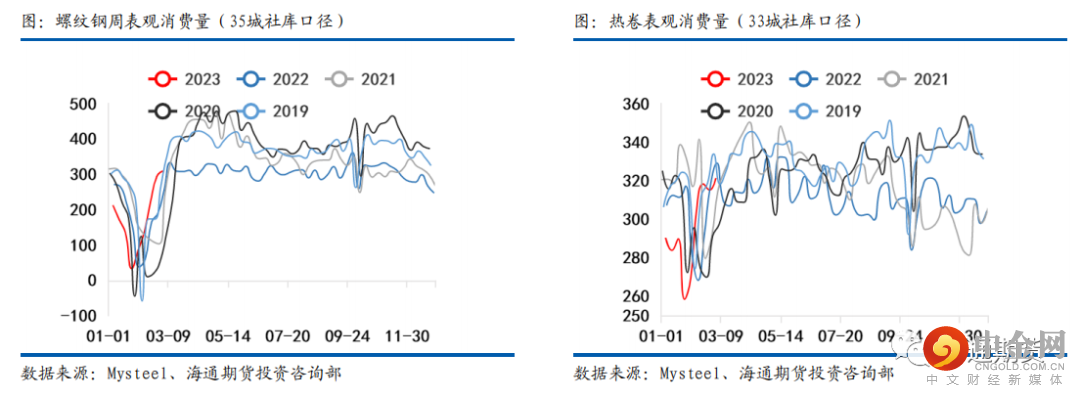 环比回升。分地区来看,华东和南方大区成交量均有回升,仅北方大区成交量小幅回落。螺纹钢测算周度表观消费量环比增加15.71万吨至309.39万吨,表需同比增速降至21.08%。热卷表观消费量周环比增加5.68万吨至321.36万吨,表需同比增速降至-1.34%。