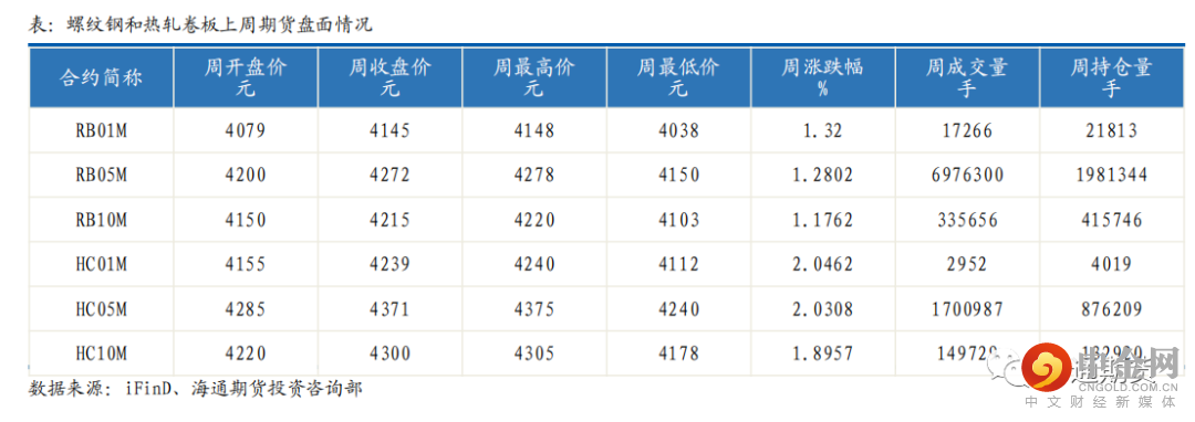 螺纹05-10月间价差从60微降至57元/吨;热卷05-10月间价差从66微增至71元/吨。热卷盘面主力合约价格表现略强于螺纹