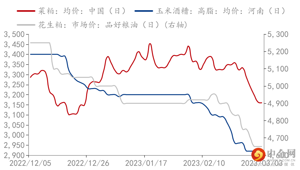 2月下半月,豆菜粕价差走势呈大幅缩小态势。目前沿海地区菜籽开机稳定偏低,菜粕供应宽松,下游饲料企业菜粕替代豆粕积极性较好,豆菜粕价差仍有收窄趋势。