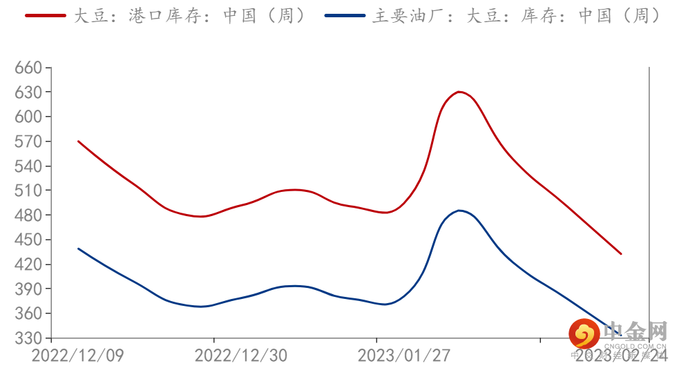 图2-10:大豆港口库存、油厂库存 单位:万吨