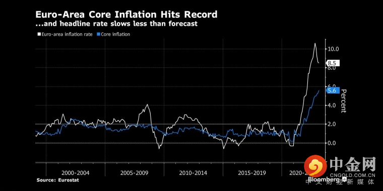由于能源价格放缓,欧元区(EARN)通胀率在去年10月份达到创纪录的10.6%后,已连续4个月下降。然而,2月份整体通胀率仅下降至8.5%,低于预期,而核心通胀率创下5.6%的新高。