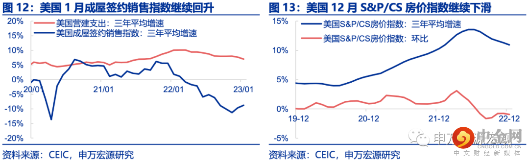 地产:美国1月成屋签约销售环比大涨8.1%,三年平均增速-8.8%,营建支出环比-0.1%,三年平均增速7.0%。美国12月S&P/CS20城房价指数环比-0.9%,三年平均增速降至11.0%。
