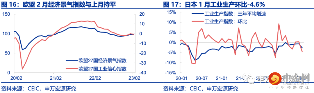 2月美国ISM制造业PMI录得47.7,较上月小幅回升,但仍连续4月在荣枯线以下。2月欧盟经济景气指数与上月持平,工业信心指数小幅下滑。1月日本工业生产环比转负至-4.6%,三年平均增速下滑至-2.7%。