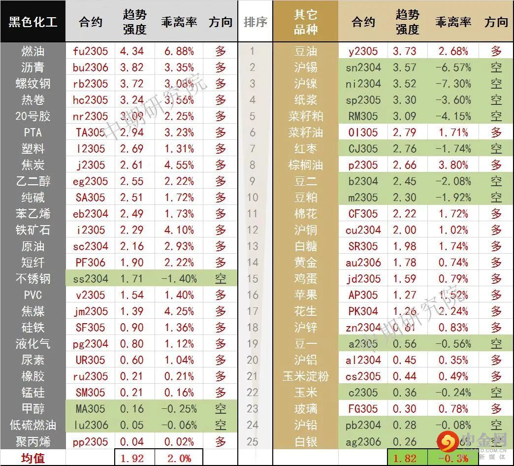 中期商品趋势榜 | 螺纹钢多头动能增强 (0303)