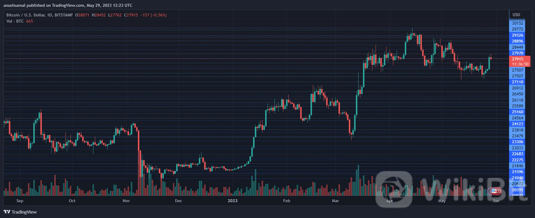 比特币在一日图上的价格为 27,900 美元 | 天天要闻资料来源:TradingView 上的 BTCUSD